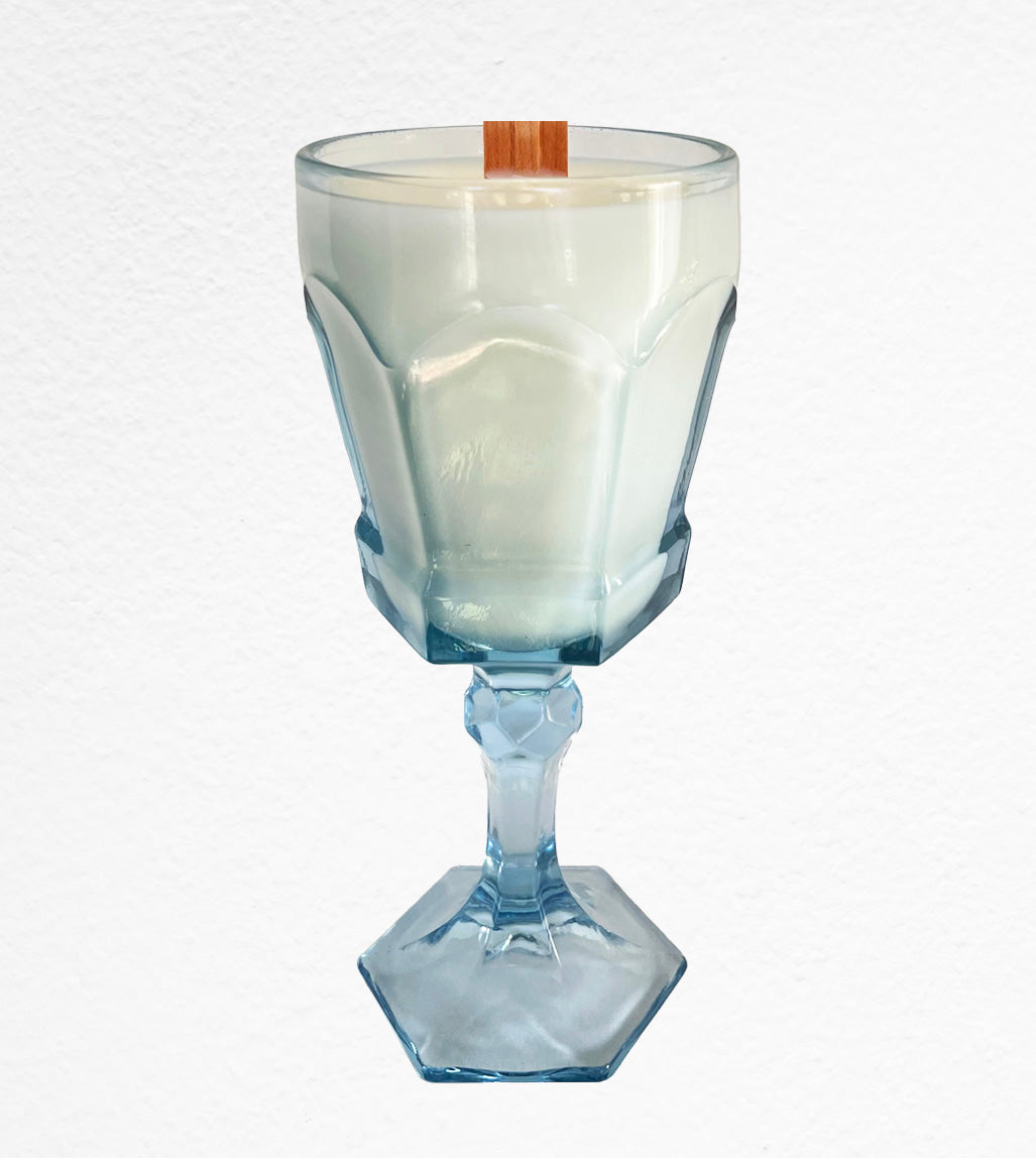 Albert is a vintage Fostoria light blue wine glass in the Virginia pattern.