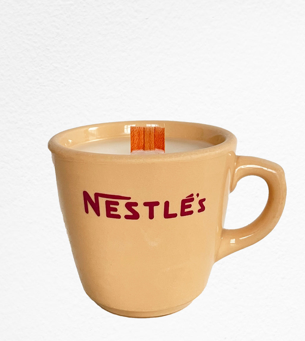 Billie is a vintage Nestle's coffee mug from the 1940's. This gem boasts the old Nestle logo and looks so charming sitting on your table. Billie's scent notes are condensed milk, vanilla, nutmeg, almond and creamy cocoa. She measures 3 inches tall and 4.5 inches in diameter with the handle.