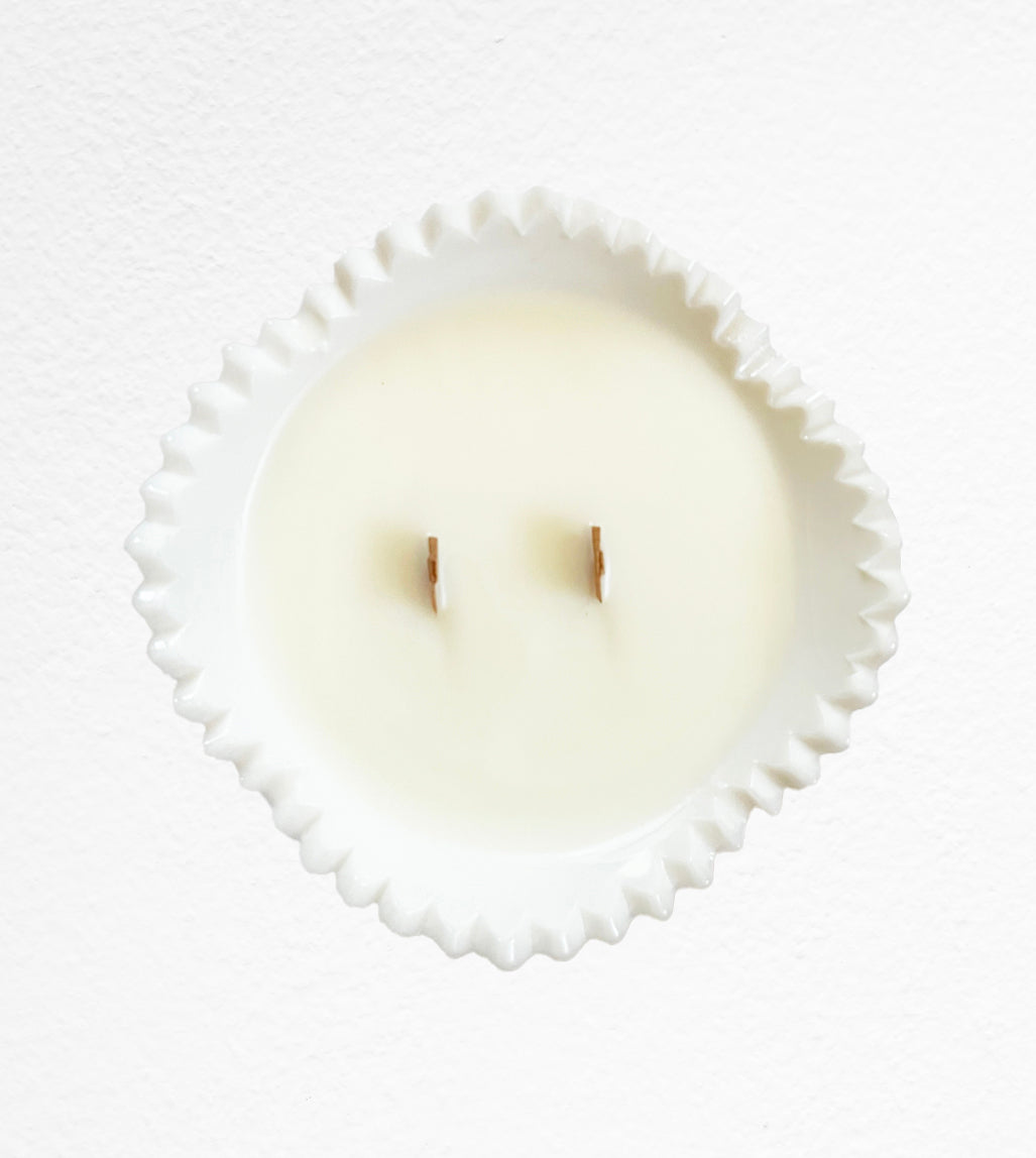 Carole is a vintage milk glass bowl with saw tooth edge by LE Smith.