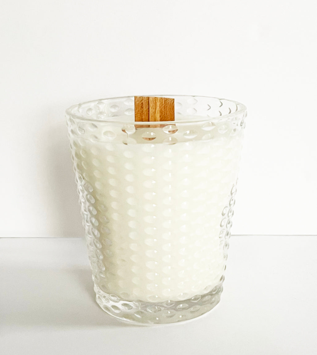 Cassius is a simple, yet elegant clear hobnail glass. After burning, use this glass for your favorite drink!