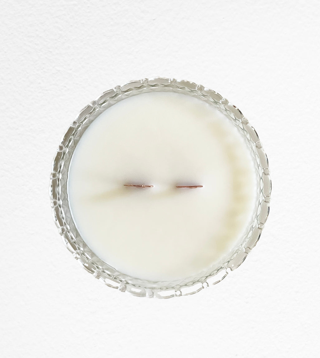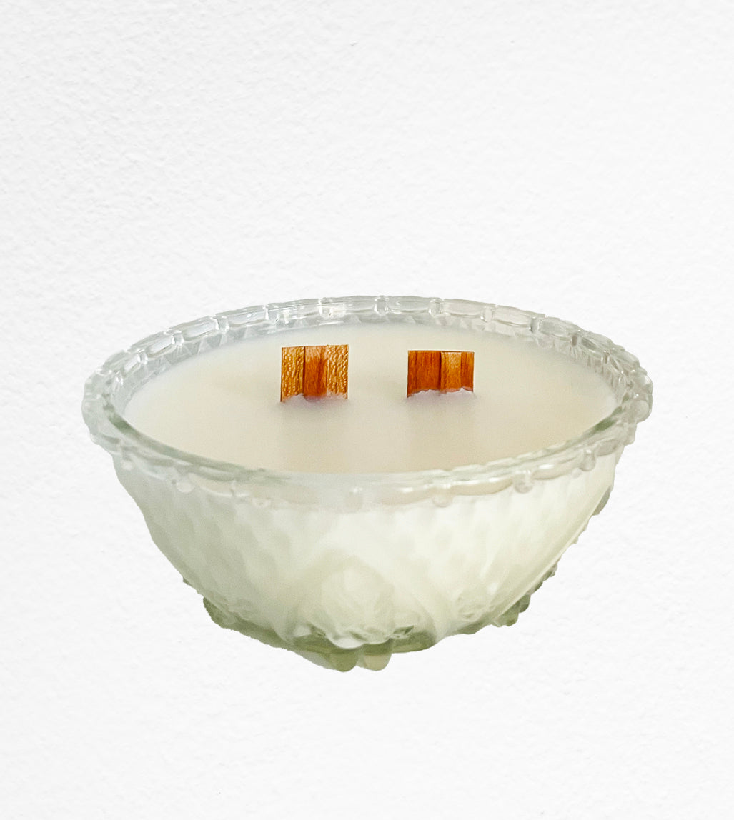 Christine is a stunning crystal bowl showcasing a beautiful diamond cut fleur de lis and rose pattern that adds a touch of elegance to any decor. Crafted by KIG in Malaysia, this vintage piece is made of high-quality pressed glass that is both durable and timeless. She measures 2 inches tall and 5 inches in diameter. Her scent notes are leather, vetiver, rum, bergamot and pepper.