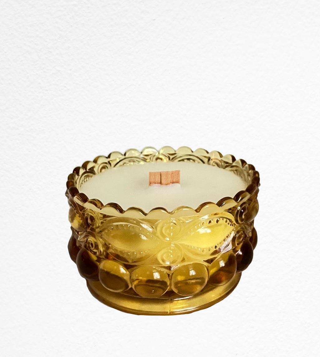 Jason is a Mosser / L.G. Wright Amber Eyewinker Round 4" Glass Dish Bowl.