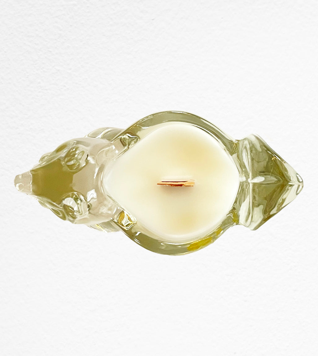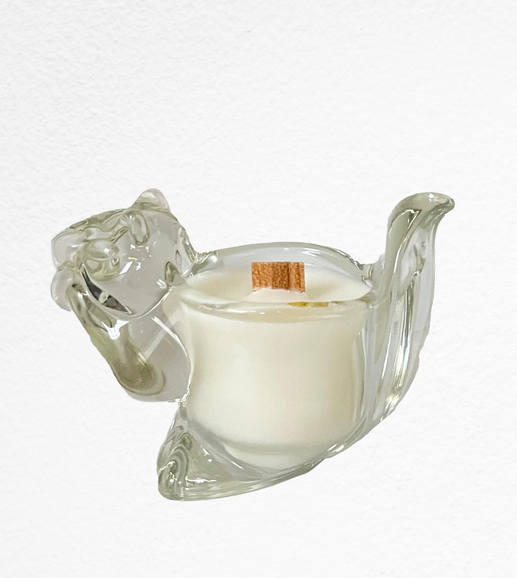 Jettie is s a vintage glass candle holder by Avon. This charming squirrel would make a great gift to any squirrel lover! Jettie measures 4 1/2 inches long nose to tail and approximately 3.25 inches tall and 2.625 inches wide. Filled with the scent notes of condensed milk, vanilla, nutmeg, almond and creamy cocoa, this cute candle will make the room smell like you just made a cup of heaven.