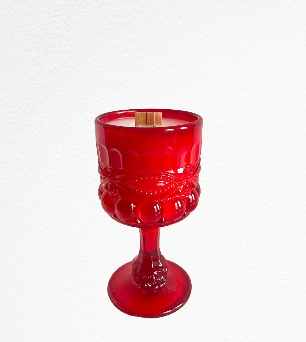 Joy is a small vintage Winking Eye ruby red water goblet.