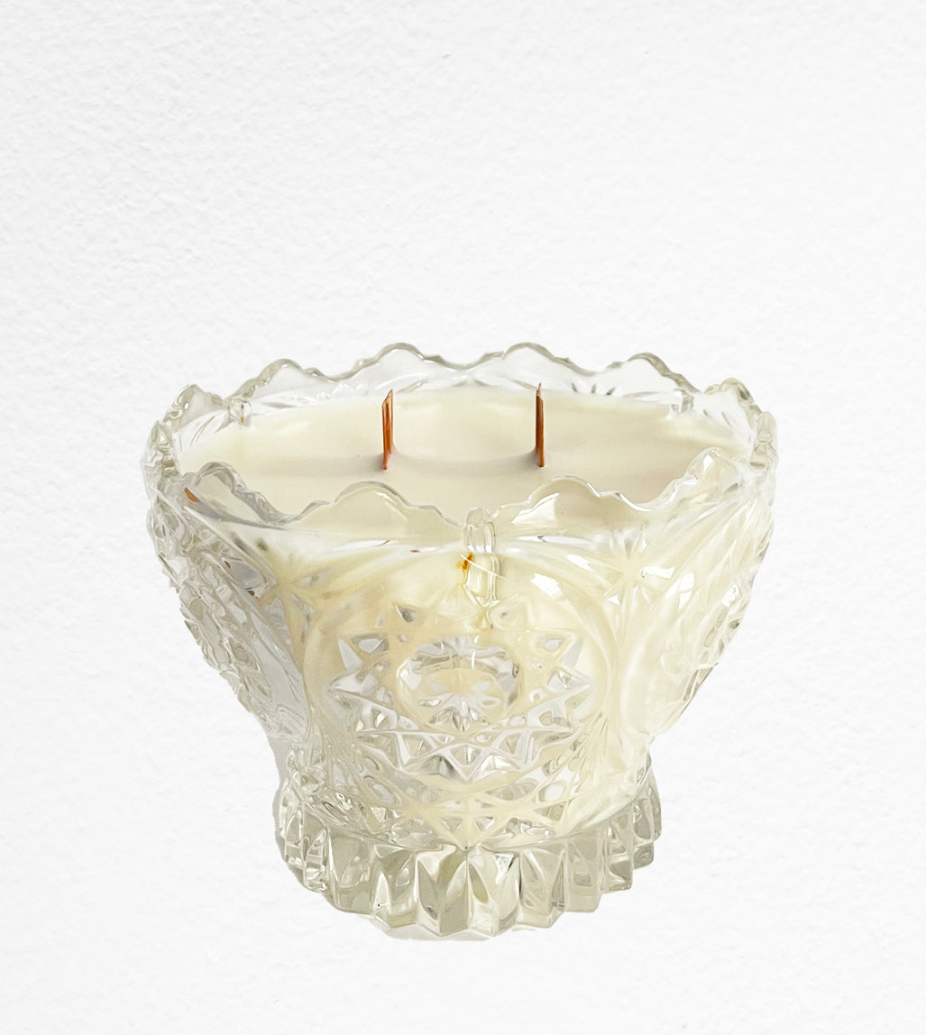 Lavinia is a gorgeous lead crystal glass bowl. She's filled with the amazing smells of a fresh buttery croissant- our Breakfast in Paris scent. Lavinia measures at 5.5 inches in diameter and 4 inches tall.