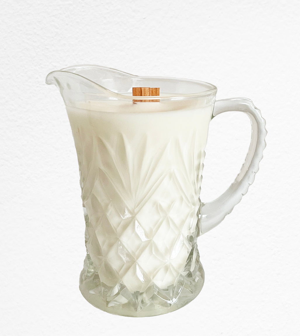 Mathilde is a small vintage clear prescut glass pitcher. This cute jug can be used after burning in so many ways!