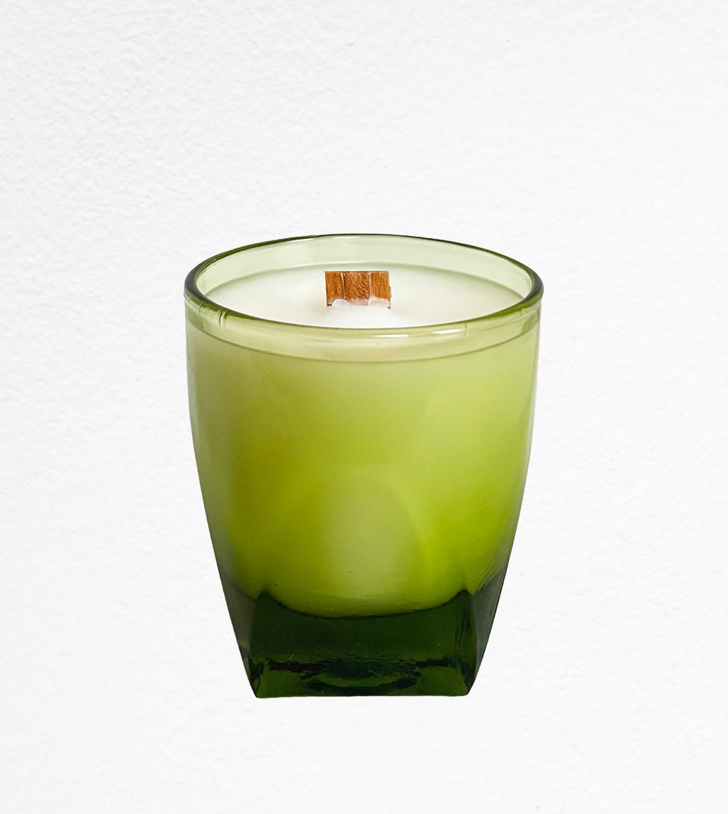 Nelson is a vintage green 5 oz Hazel Atlas cocktail double shot glass with a square bottom. He is small but handsome. He is a 3 inches tall and 2.5 inches in diameter. Nelson has scent notes of woods, bergamot, mahogany and musk.