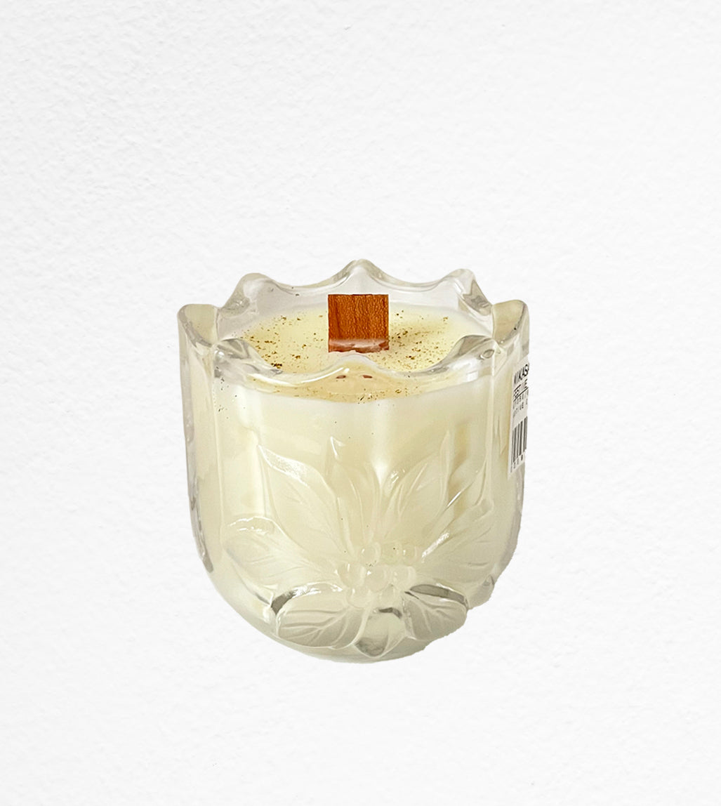 Sandra is a gorgeous brand new Mikasa Festive Poinsettia, heavy glass, votive candle holder. She is 3 ¼ inches tall.